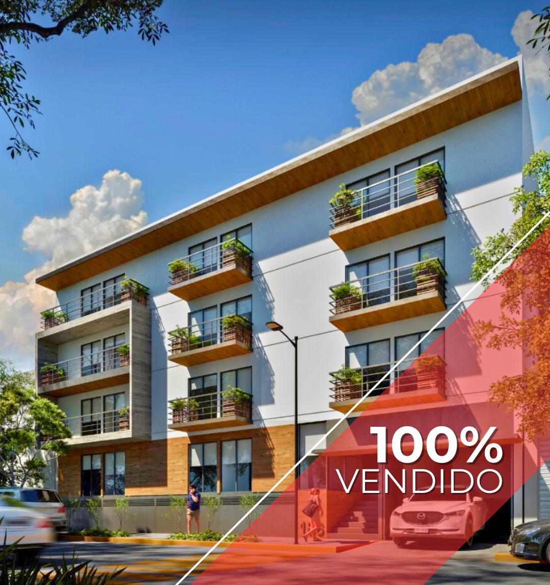 Departamentos de 67 m2 con 2 recámaras, Recámara principal con vestidor y baño*, 1 y 2 baños, Cocina integral, Balcón en departamentos exteriores, Roof garden privado* y Terraza privada*, Elevador, 1 cajón de estacionamiento, Seguridad 24/7 *Aplica en algunos departamentos.
